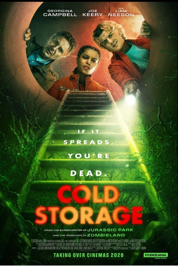 Cold Storage is the kind of messy, gory horror-comedy that makes you wonder why we ever stopped letting fungi have their way with humanity in movies. The premise is simple: a long-frozen parasitic fungus escapes containment and spreads chaos in humans and animals alike, causing twitching, exploding, goo-covered carnage that looks simultaneously gross and oddly fascinating. It is a setup that would not feel out of place in a late-night B-movie, yet the film balances it with enough modern pacing to keep you from checking your phone every five minutes. The cast navigates this chaos with varying degrees of disbelief and commitment, which actually works in the movie's favor. Georgina Campbell keeps the tension anchored, Joe Keery reacts like a normal person trapped in absurdly sticky situations, and Liam Neeson delivers his usual gravitas in government briefings about a fungal apocalypse which somehow becomes funny without ever feeling like a parody. The supporting cast sometimes drifts into background territory, but they are forgiven once the fungus starts claiming bodies in ways that would make The Thing blush. Visually, the movie leans heavily on practical effects. Bodies twitch, mutate, and explode in gooey, satisfying ways, giving the film a tactile, visceral texture that CGI cannot quite match, though it does make a cameo now and then, especially with infected animals. The horror is messy, but intentional, and the occasional comedic beat, like Keery's deadpan disbelief, keeps it from becoming just another slasher-style blood bath. It is reminiscent of the chaotic charm of Return of the Living Dead or Evolution, but with a distinctly modern, workplace-horror twist. Where Cold Storage stumbles is largely predictable: a few mid-movie lulls and underwritten supporting characters. Some jokes fall flat, and the CGI occasionally looks like someone squirted a little too much fake slime on the wrong animal. But these flaws do not ruin the ride; they merely give the audience a chance to catch their breath before the next fungal explosion reminds them why they came in the first place. Overall, Cold Storage . is ideal for anyone who likes their horror gross, their humor dry, and their sci-fi infectiously chaotic. It is not art house horror, and it is not reinventing the genre, but it proves that horror can still be playful, grotesque, and unexpectedly funny. If you are looking for something to make you cringe & laugh, this is your fungal fix for 2026.